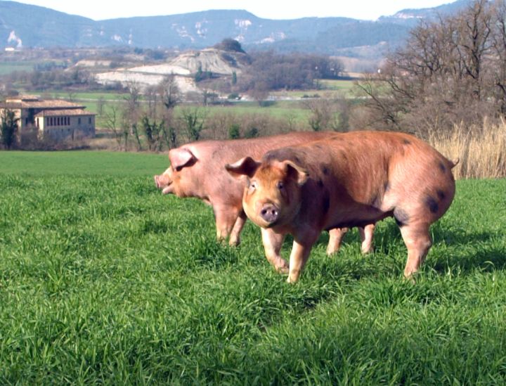 El nostre porc Bruencí és de raça Duroc. Prové de les granges de la Cooperativa Plana de Vic i està alimentat amb els millors cereals i lleguminoses seleccionats pels nostres experts en nutrició riques en vitamines i minerals. La seva carn és gustosa tendre i sana.