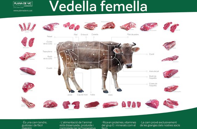 La carn de vedella Plana de Vic prové únicament de vedelles femelles de granges de proximitat. Gràcies a la seva alimentació controlada i natural i que són vedelles que tenen com a màxim 12 mesos de vida, Plana de Vic ofereix una carn amb més sabor i una textura més melosa.