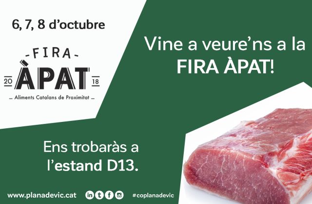 Els pròxims dies 6, 7 i 8 d’octubre Barcelona acull la 4a edició de la Fira Àpat, on la nostra carn Plana de Vic tindrà presència amb un estand.